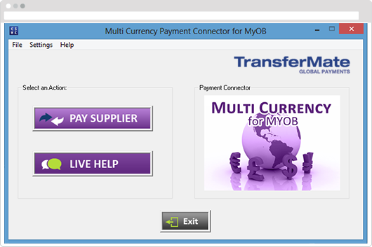 Using this great add-on, purposely built for MYOB, you can now at the click of a button pay hundreds of invoices instantly, providing your team with enormous time savings. In addition you also secure preferential exchange rates and lower transfer fees* than using the bank so in addition to time savings you also save a lot of money!