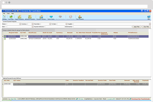 Using this great add-on purpose built for JCurve by our team you can now at the click of a button pay hundreds of invoices instantly, providing your team with enormous time savings. In addition you also secure better exchange rates and lower transfer fees than using the bank so in addition to time savings you also save a lot of money.